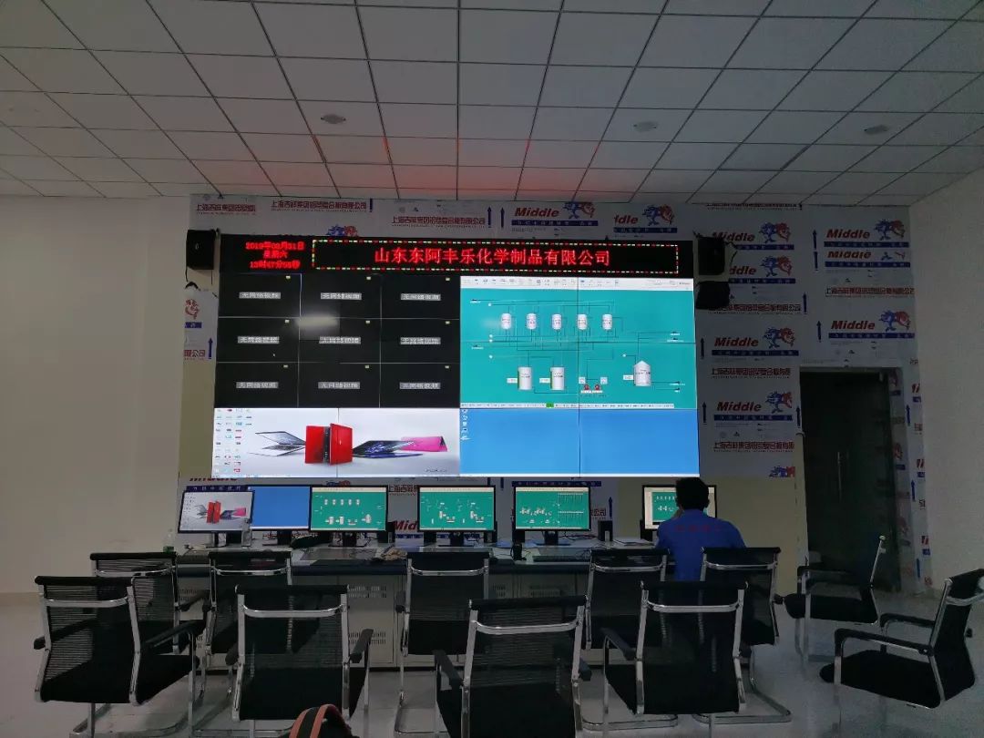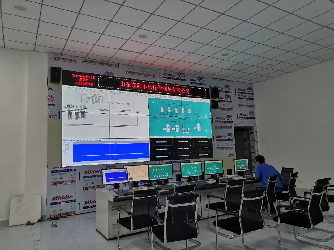 丙炔醇(C3H4O)与丁炔二醇(C4H6O2)多应用医药、农药等行业,众多周知,化学制品的生产加工要求环境极为苛刻,每一步生产工艺都不能粗心大意;为此,东阿丰乐化学制品有限公司引入拼接屏作为其安全生产监控中心的终端显示设备,在进行对生产流程进行监控的同时,还可进行数据分析,结合实际情况,针对不同的问题,制备相应的预案。